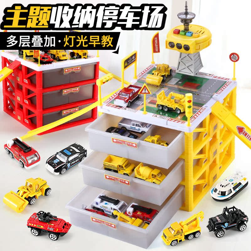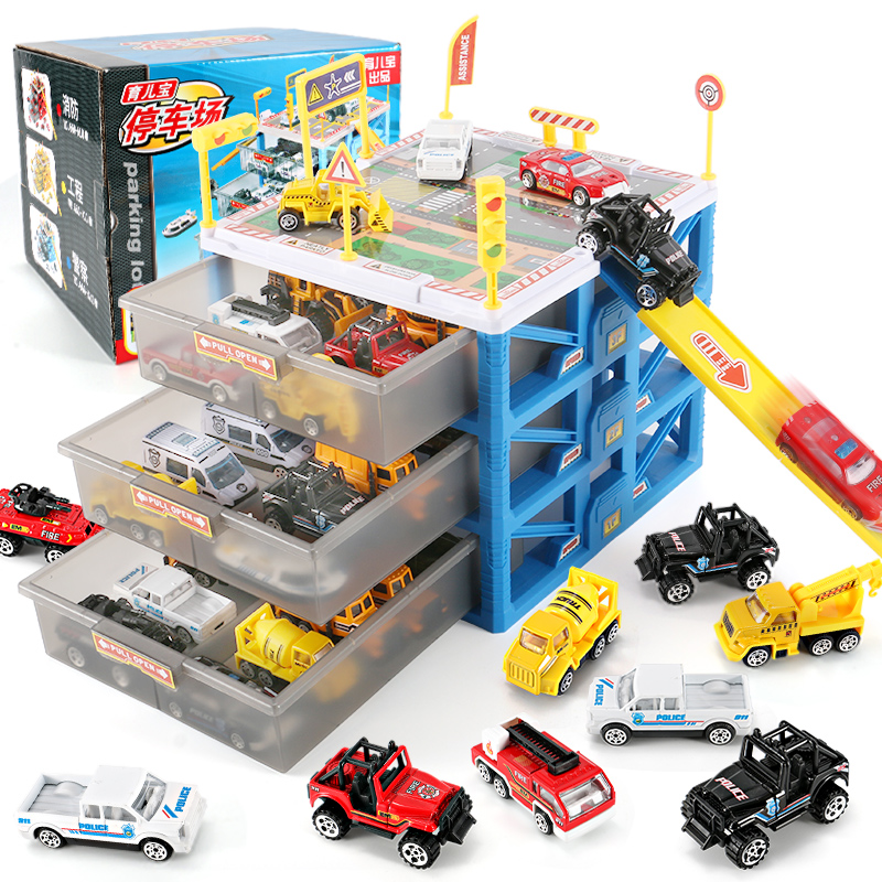 Children Parking Lot Toy Model Containing Box Alloy Small Car Police Car Engineering Car 5 Fire Truck Suit 3-6 years old