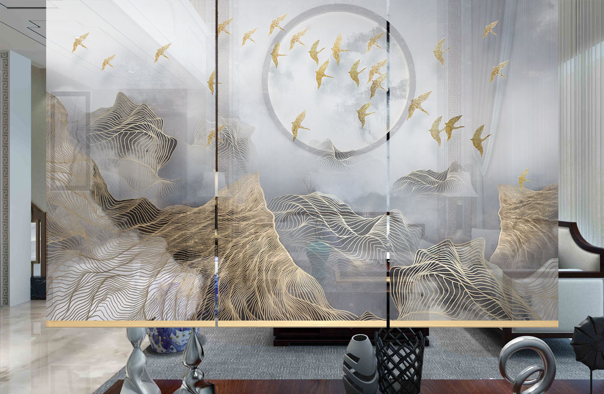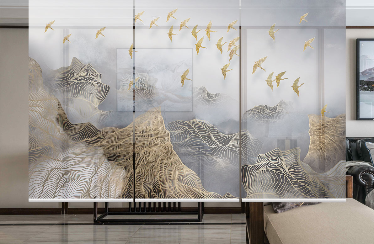 Love Process New Chinese style Hanging Screen Partition XUANGUAN CURTAIN SOFT PARTITION LIVING ROOM XUANGUAN HANGING CURTAIN ROLLER BLIND ABSTRACT LANDSCAPE
