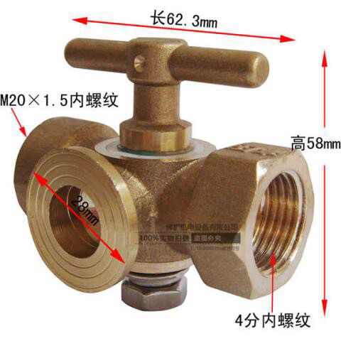 Pressure gauge three-way plug valve Ball valve Pressure gauge steam valve 4 points-M20x1 5 brass thickened high pressure double 4 points