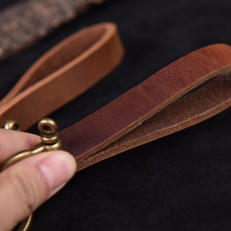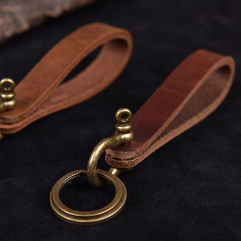 Pure handmade leather key chain retro first layer cowhide car key hanging horseshoe buckle gift simple unisex