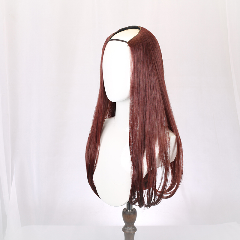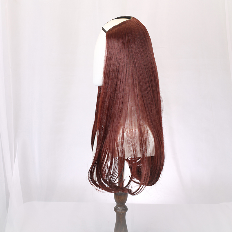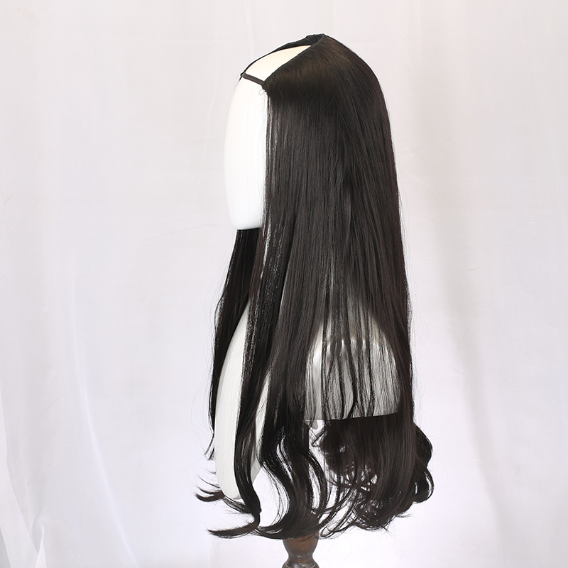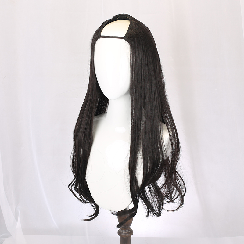 Wig woman long curly hair large wave invisible pear flower roll long hair round face full headgear u type wig half headgear straight hair