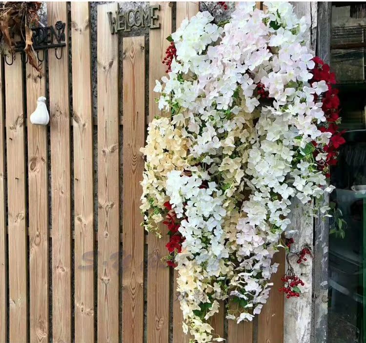 Simulation hydrangea soft branches hanging hydrangea wedding flower arrangement props wall hanging decoration landscaping simulation wild hydrangea