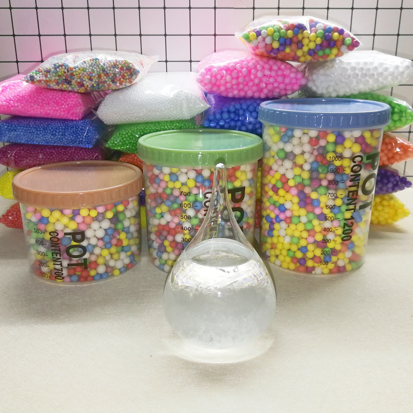 DIY Styrofoam foam ball round ball snow puree white handmade slime filled with colored particles decorative material