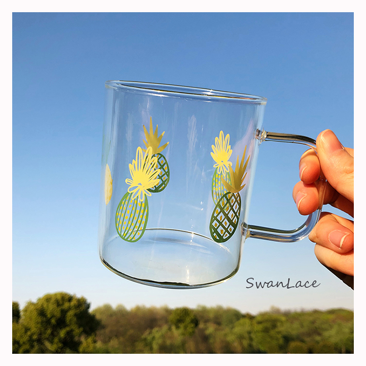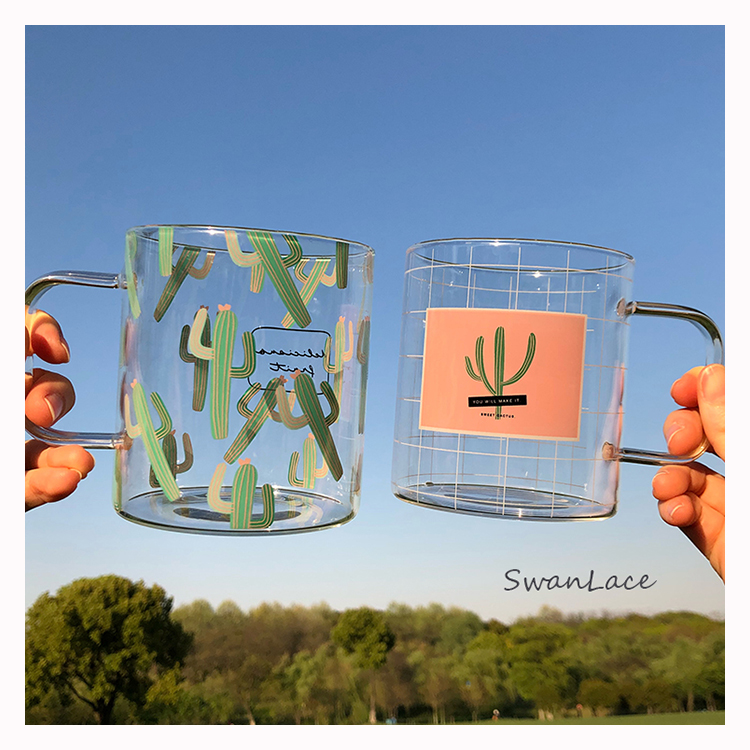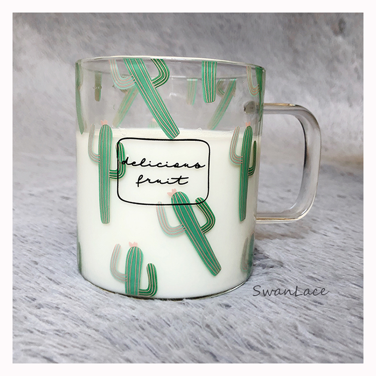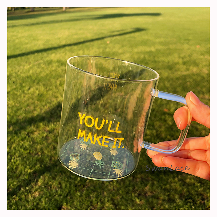 SwanLace good things fresh Korean pineapple cartoon cactus letters with handle water glass juice glass glass