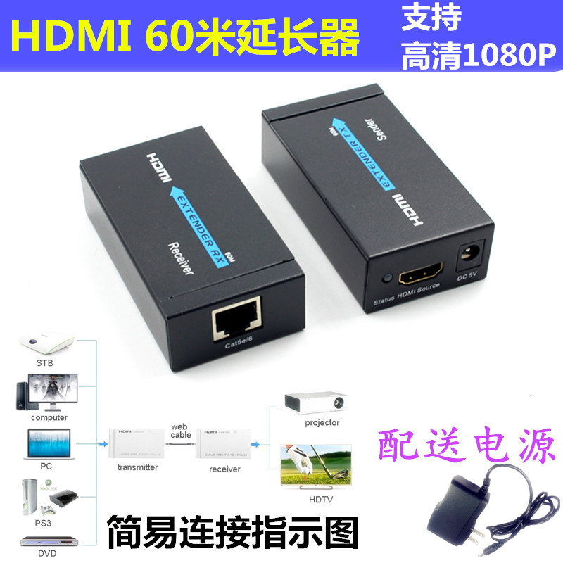 HDMI extender hdmi turn rj45 single network cable high-definition network transmission signal amplification extender 50 60 m-Taobao