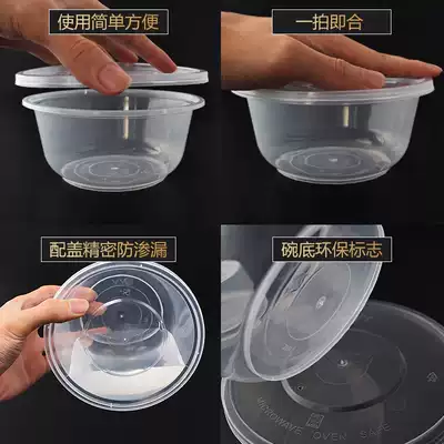 Disposable plastic bowl thickened round disposable lunch box with lid transparent commercial fast food soup bowl delivery box