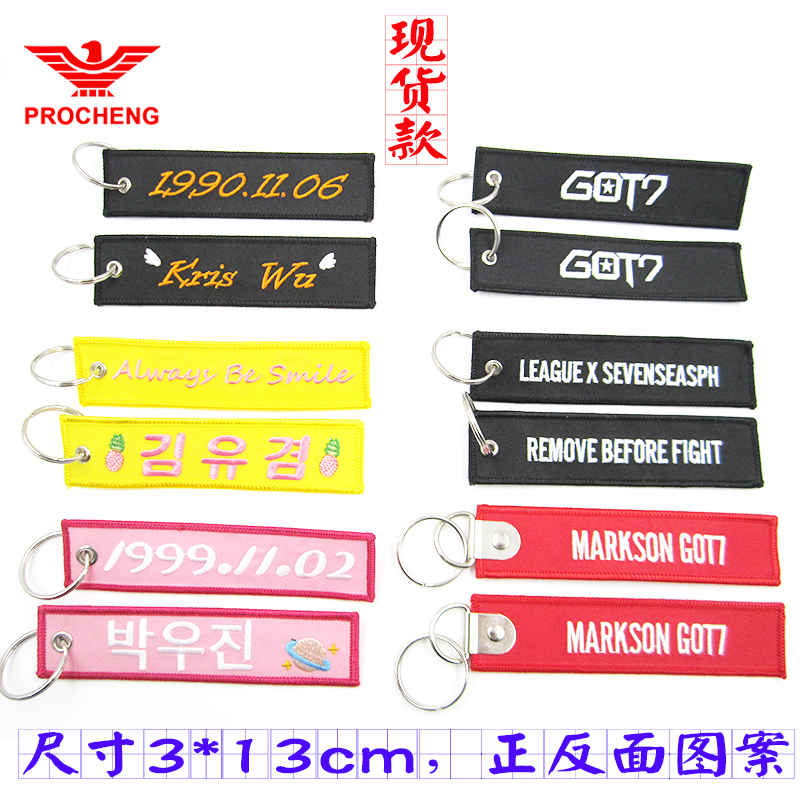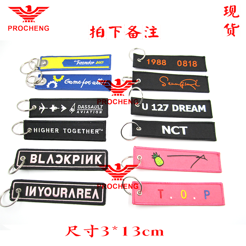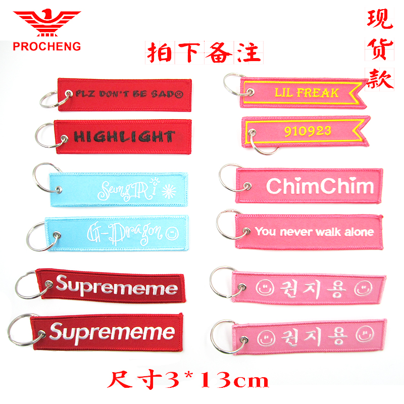 High-end Embroidered Key Buckle Custom Runway Double Face Diy Name Bar CREW Embroidered Cloth Face Boomer Sign