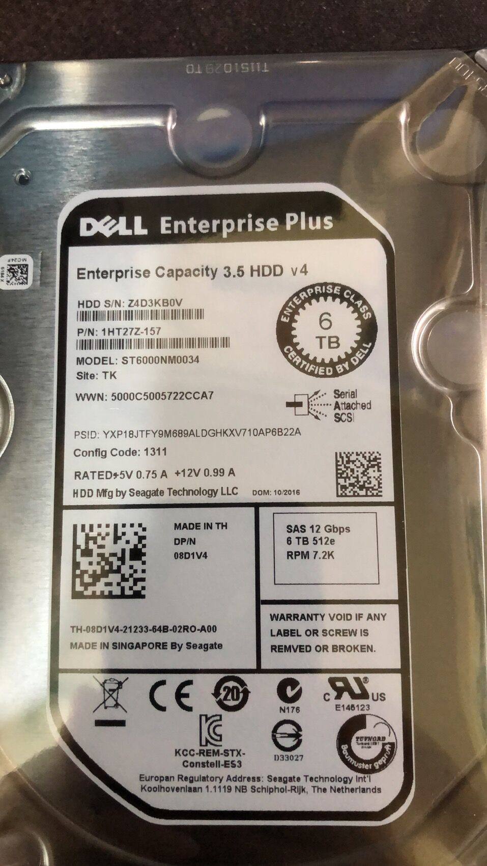 Optional Dell Seagate ST6000NM0034 6T 3 5 inch 7 2K Enterprise SAS disk 12GB