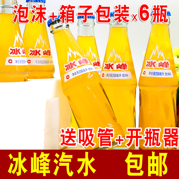 New Cargo Ice Peak Soda Bottled 200ml * 6 Glass Bottles Orange Taste Carbonated Drinks Fruity Juice
