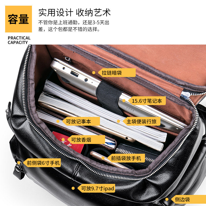European station leather backpack men's fashion cowhide Korean version men's backpack youth school bag leisure travel computer bag