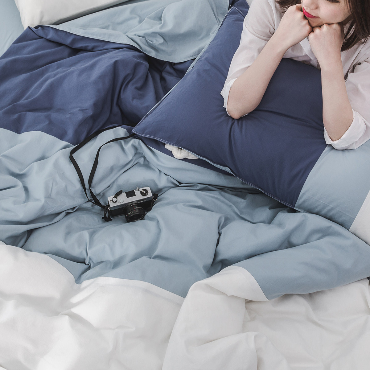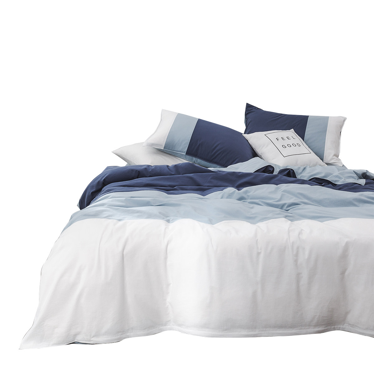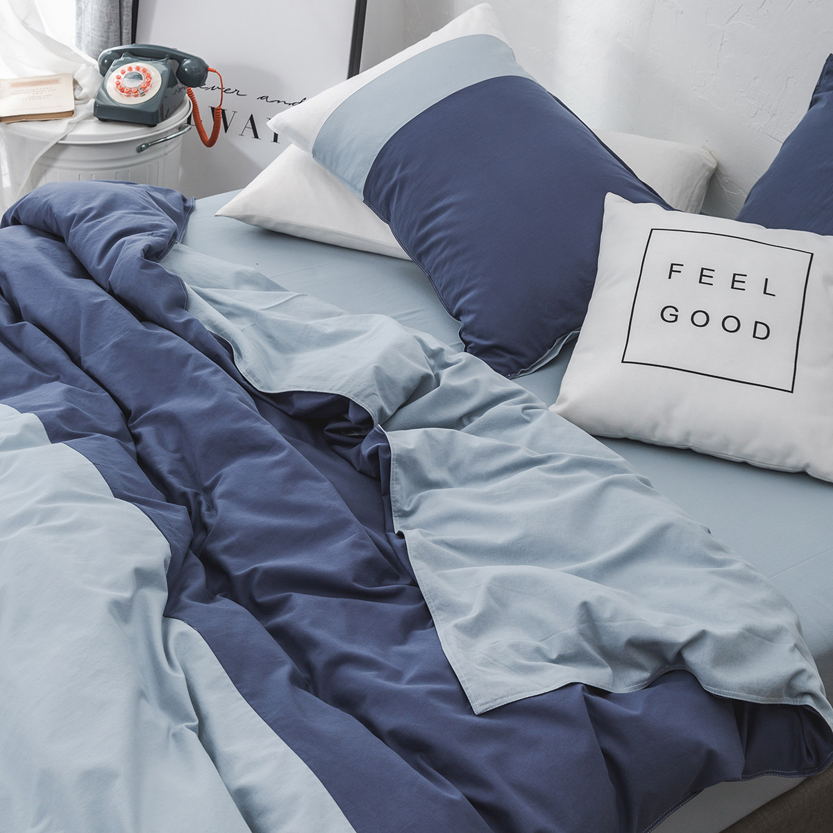 Moonlight Home Textile Cotton Simple Contrast Water Washed Cotton Double Fall/Winter Nordic Homestay Net Red Three-Piece Set Four-Piece Set