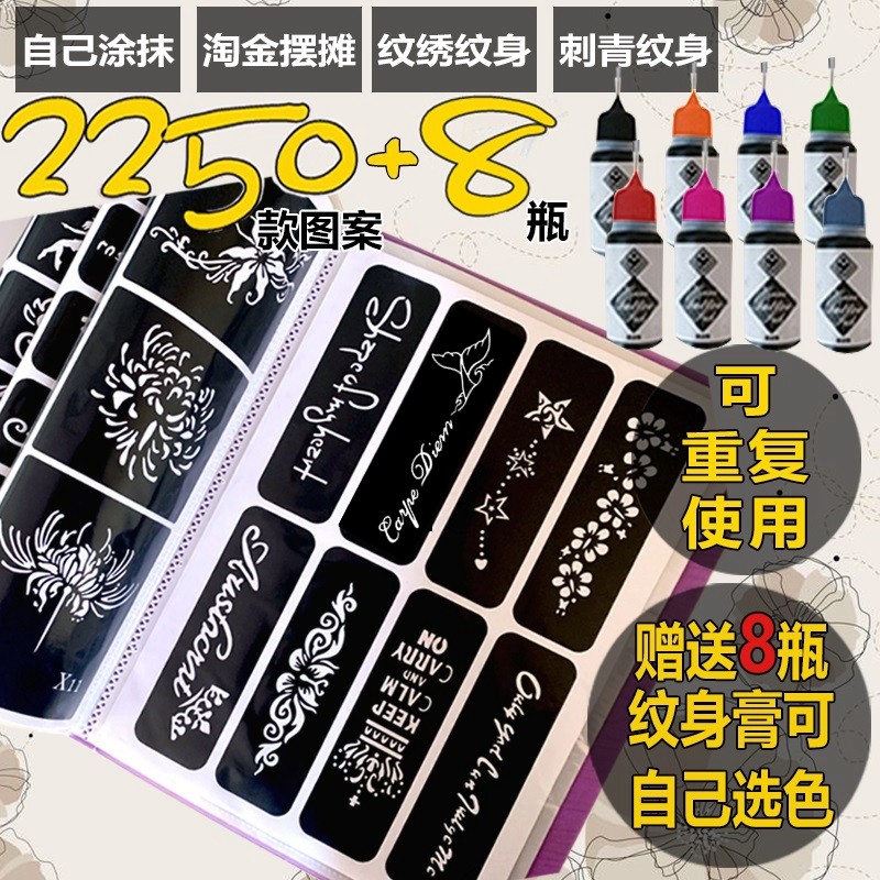 Semi-permanent tattoo stencil small tattoo stickers juice template hollow lasting pattern book embroidery herbal inkjet set