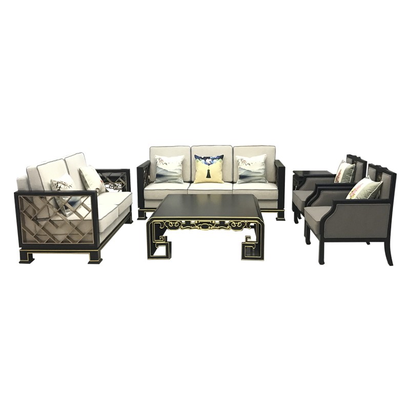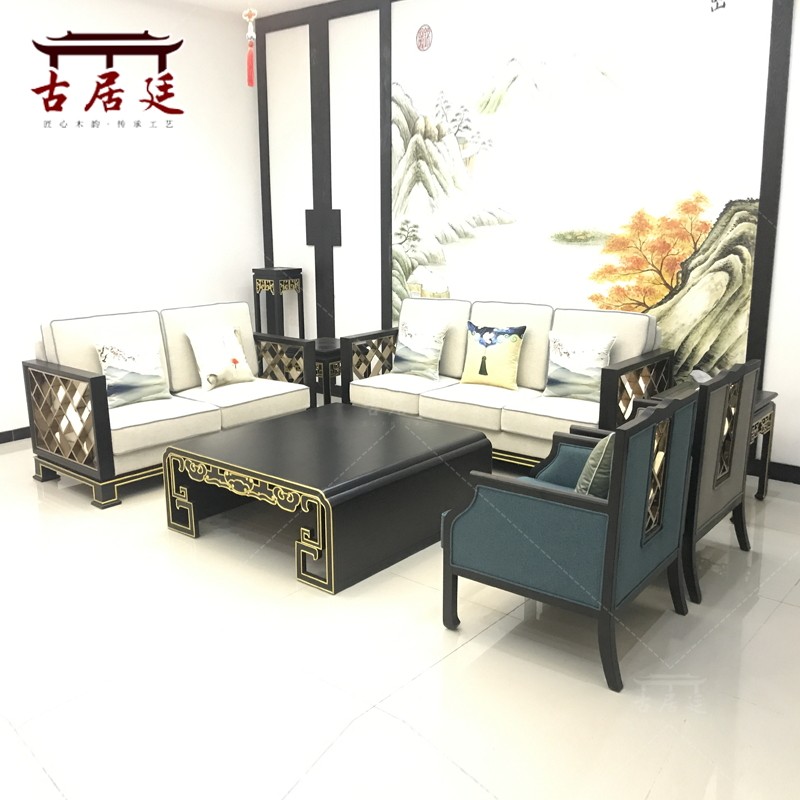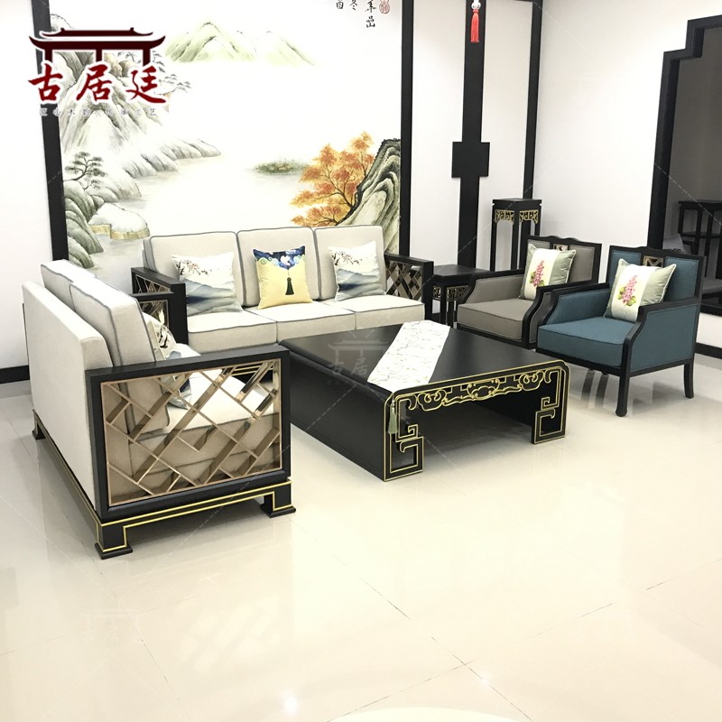 New Chinese sofa combination modern simple Chinese style Zen solid wood living room three hotel model room furniture