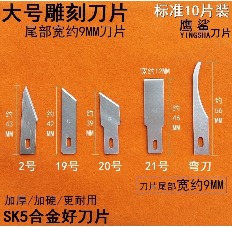 No. 21 large flat shovel scraper blade 10 pieces 1 bottle of Eagle Shark bold large silver handle 1 stick without blade Eagle Shark No. 2 large carving blade 10 pieces 1 bottle of Eagle Shark No. 19 large carving