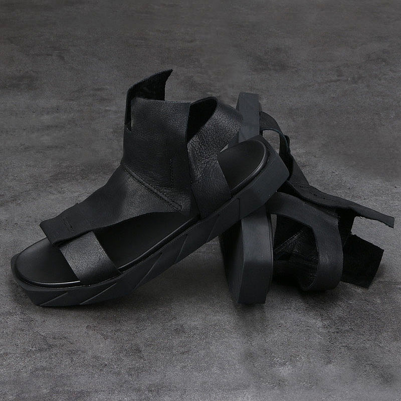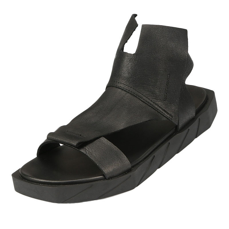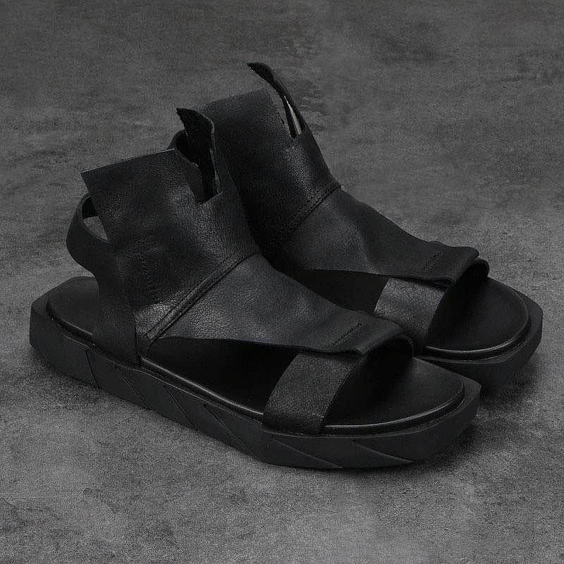 European and American summer fur thick trend beach men's sandals Ancient dark black cow piroma sandals