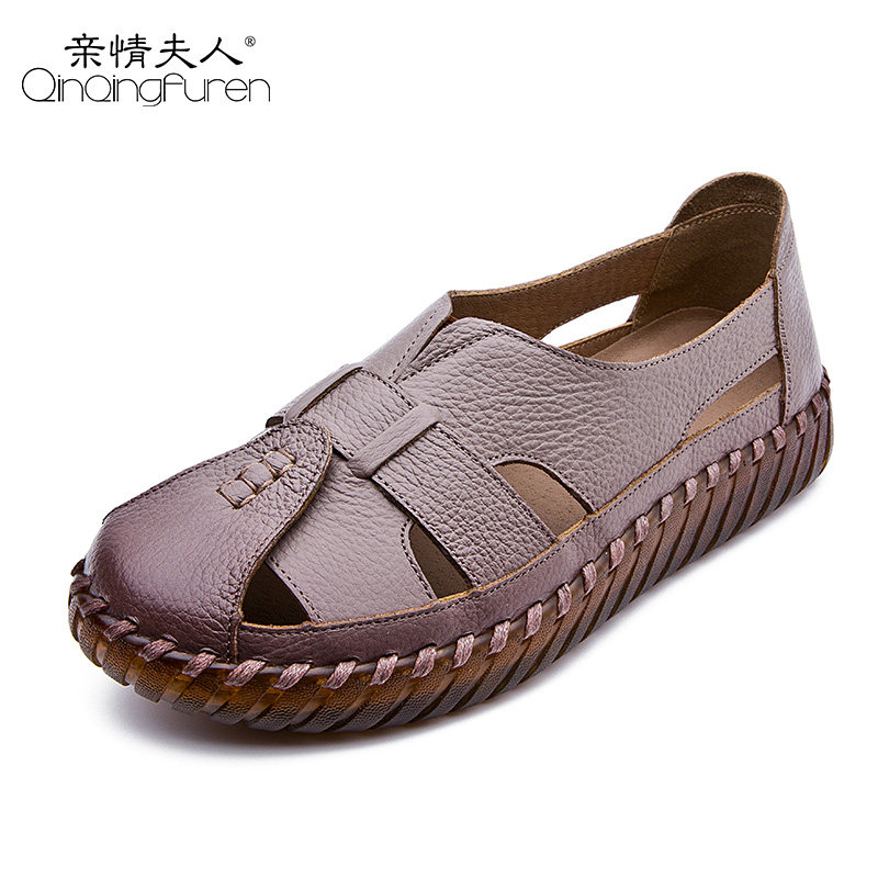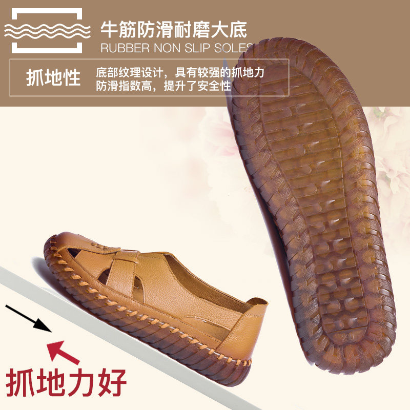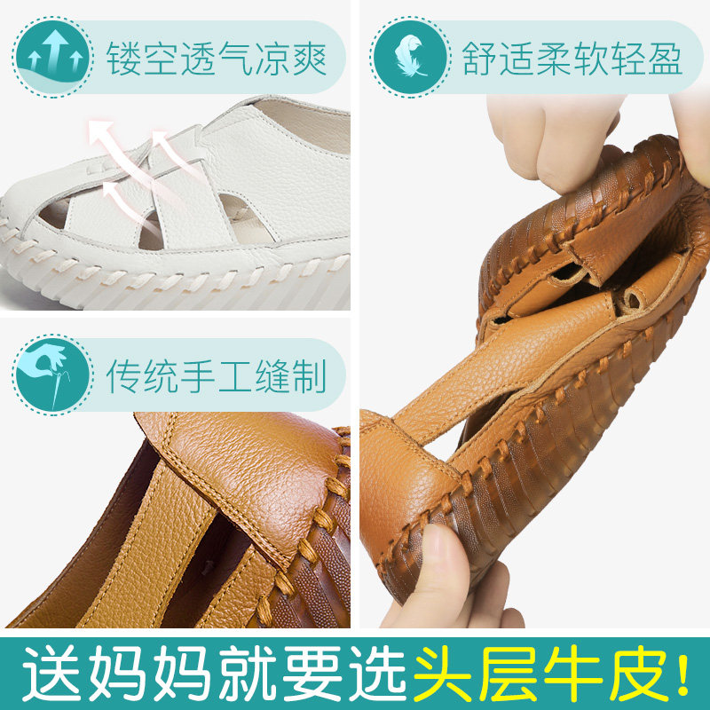 Large size Mom sandals Shoes Genuine Leather Soft-bottom Women Summer Flat Bottom Middle Aged Dongle Shoes Non-slip Bull Fascia Seniors Leather Shoes-Taobao