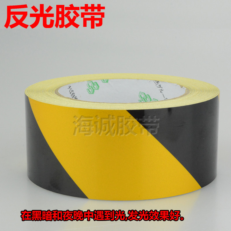 Reflective yellow black adhesive tape luminous fluorid Horse logo Traffic warning cordon tape 4 8-5-6-10CM wide