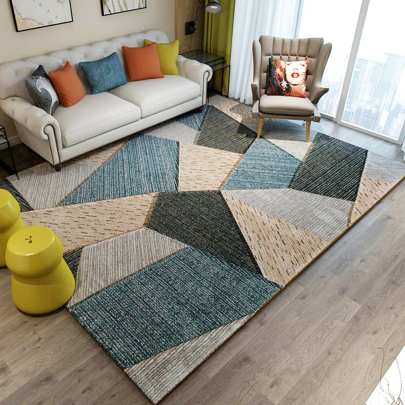 Modern minimalist Nordic living room coffee table carpet light luxury home bedroom bed front geometric pattern floor mat is easy to take care of