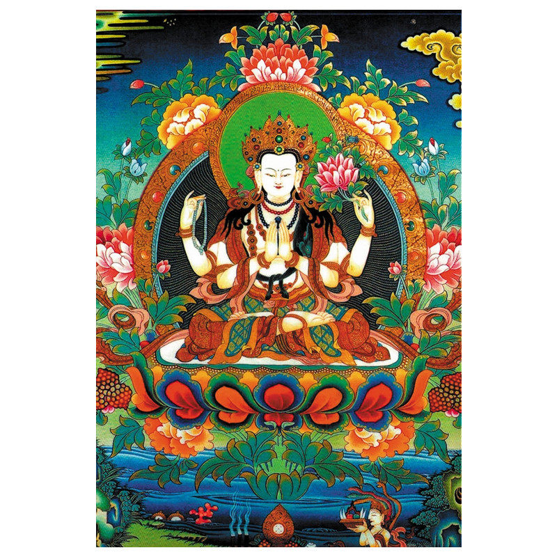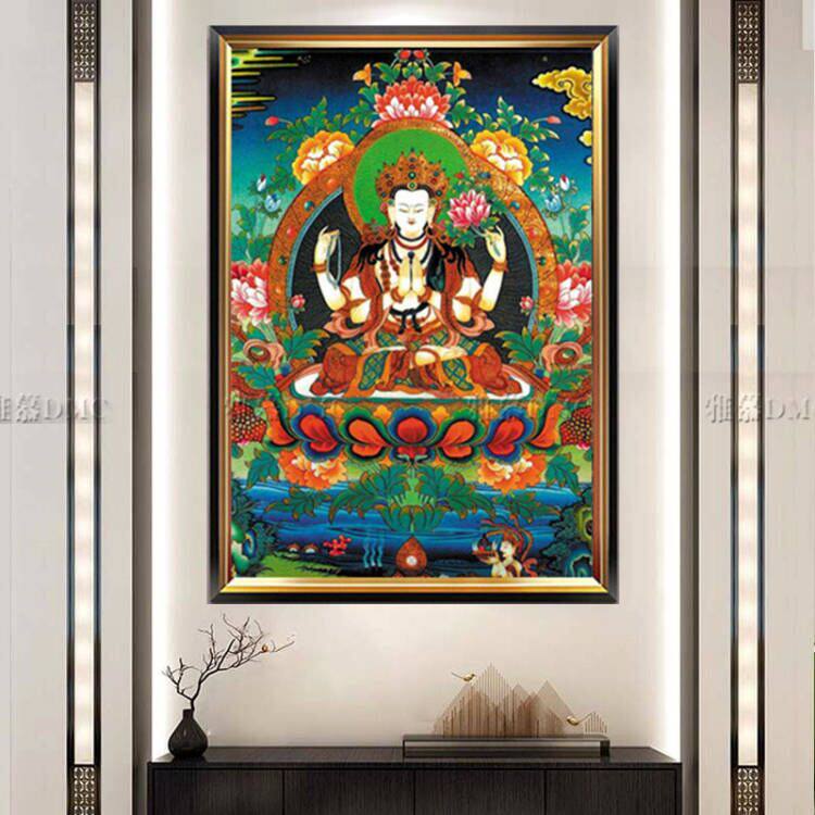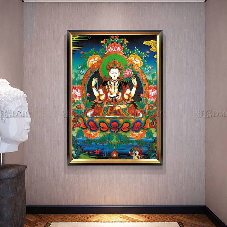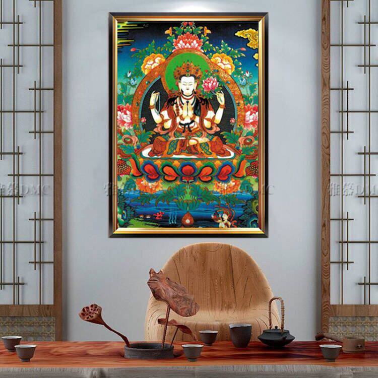 New printed DMC cotton thread cross embroidered kit Living room Buddha figure Tang KaGuanyin Four-arm Guanyin
