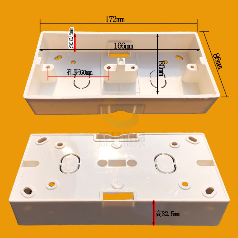 Thickened white 86-type switch socket panel surface-mounted double-link PVC junction box wiring box conjoined universal bottom box
