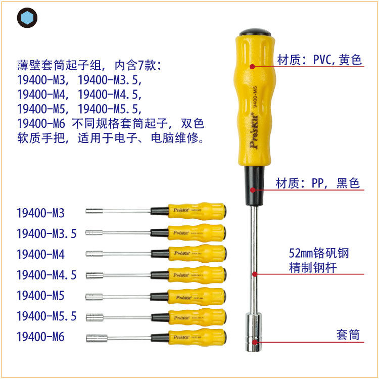 Taiwan Baogong thin wall small sleeve screwdriver screwdriver 19400-M3 3 5 4 4 5 M5 M5 5X70mm