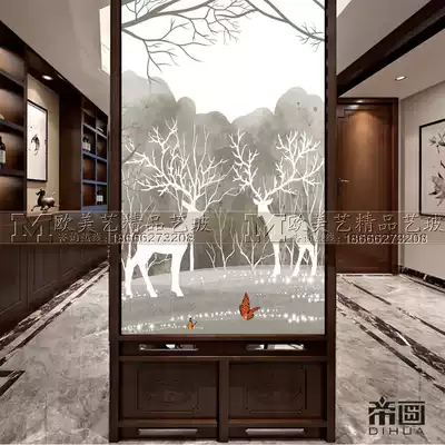 North American and European style art glass screen partition Modern living room dining room sliding door shoe cabinet decoration porch background