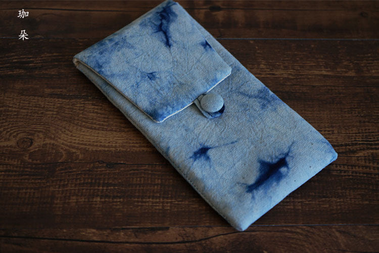 Plant Zstained Glasses Bag Retro Clip Cotton Sunglasses Bag Handmade Fabric Anti-Fall Blue Dyeing Sunglasses Cotton Linen Cashier Bag-Taobao