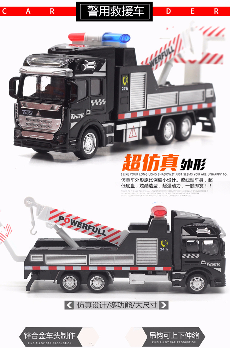 Alloy car police car guard trailer crane flat car rescue car tool car 1:48 simulation model toy car