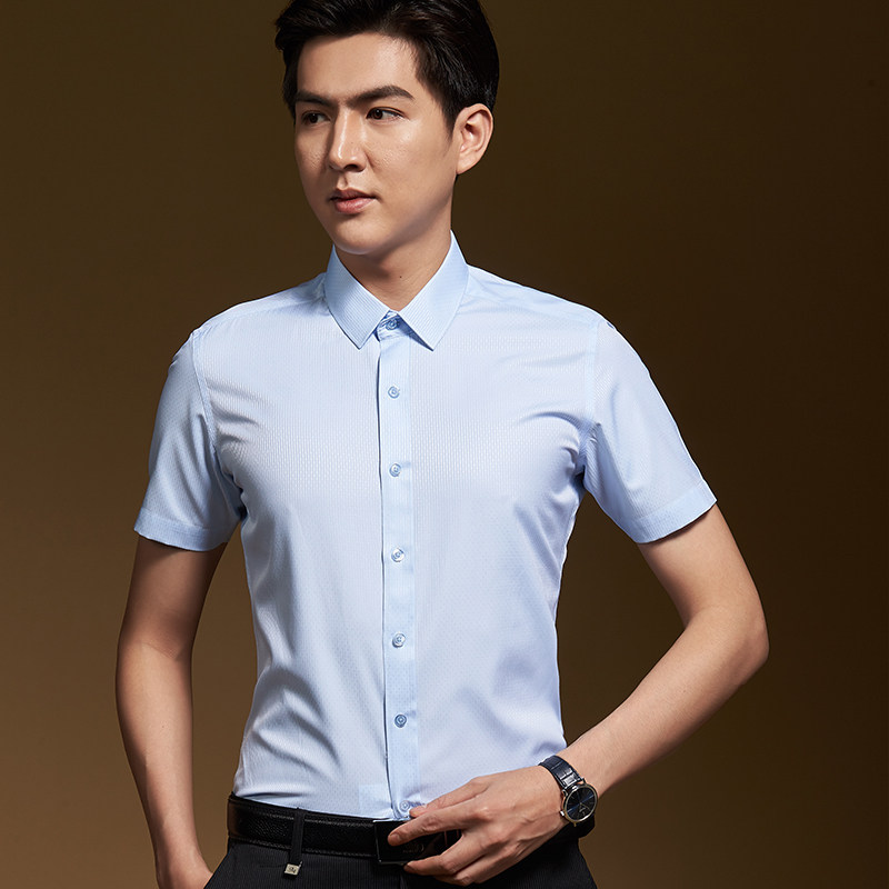 Summer thin men's short-sleeved shirt non-ironing work clothes Professional business slim-fit formal dress to work pure white shirt inch