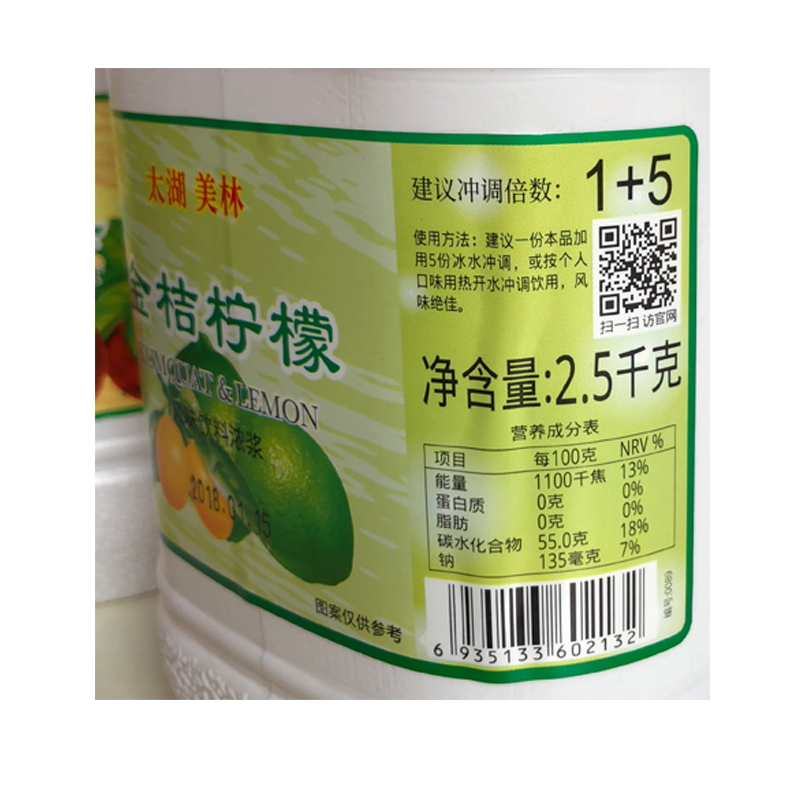 Taihu Merrill A-grade kumquat lemon juice 2 5kg concentrated juice drink milk tea shop special commercial raw materials