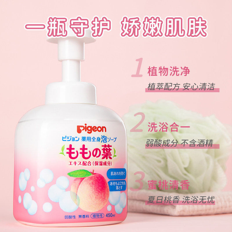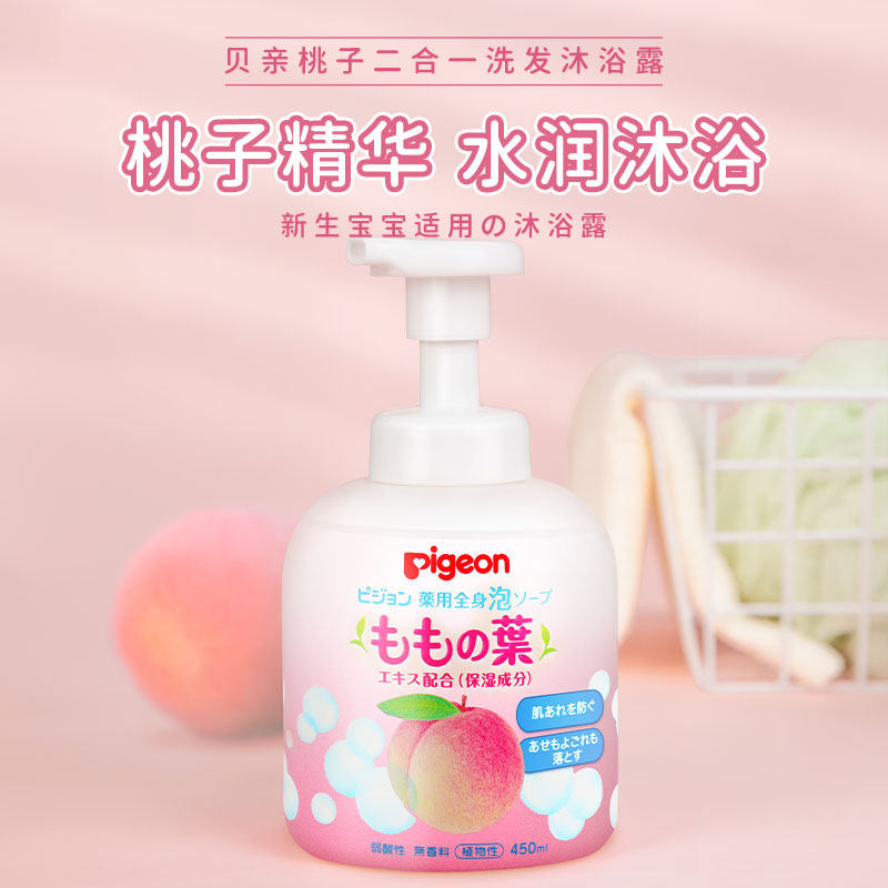 Japan Pigeon Shell Pro Peach Water Shower Gel Baby Baby Shampoo Bath 2 in 1 Children's Summer 450ml