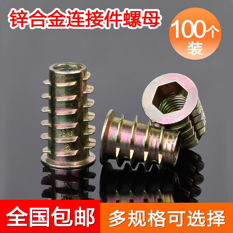 Zinc alloy internal and external tooth nut embedded solid wood furniture embedded screw belt cushion with medium connecting piece screw cap m6m8