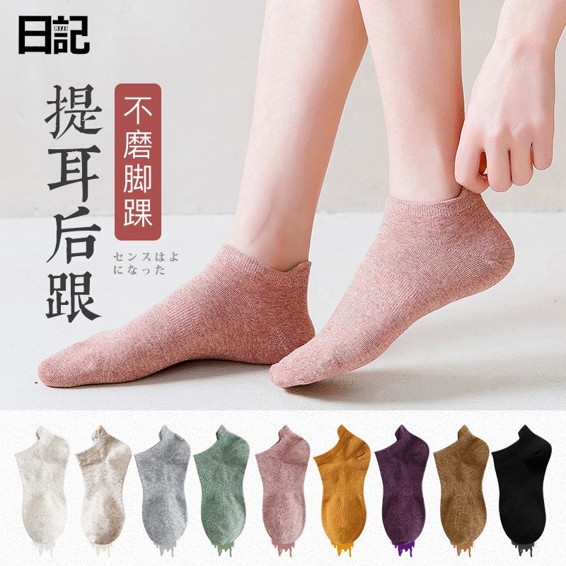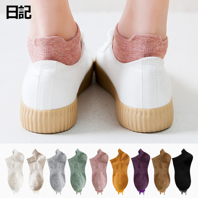 Socks, women's socks, autumn, spring and summer, ultra-thin, hemp-colored, large heel, anti-drop and low-cut boat socks, Japanese Harajuku