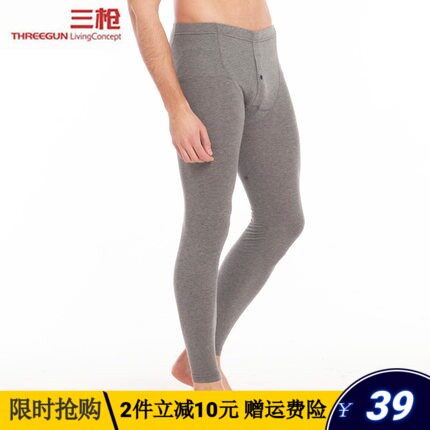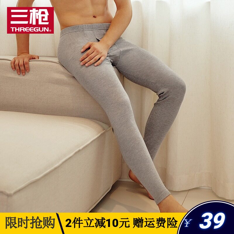 Three-gun sanitary pants men's spring and autumn thin stretch cotton lycra warm pants single-piece slim sanitary pants cotton wool pants wear sanitary pants