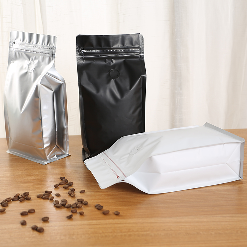 Transparent eight-side seal coffee bag (without air valve) yellow kraft paper eight-side seal coffee bag (without air valve) white kraft paper eight-side seal coffee bag (without air valve) black eight-side seal coffee bag (without air valve) white eight-side