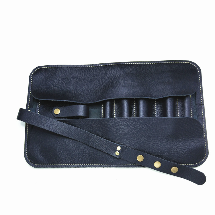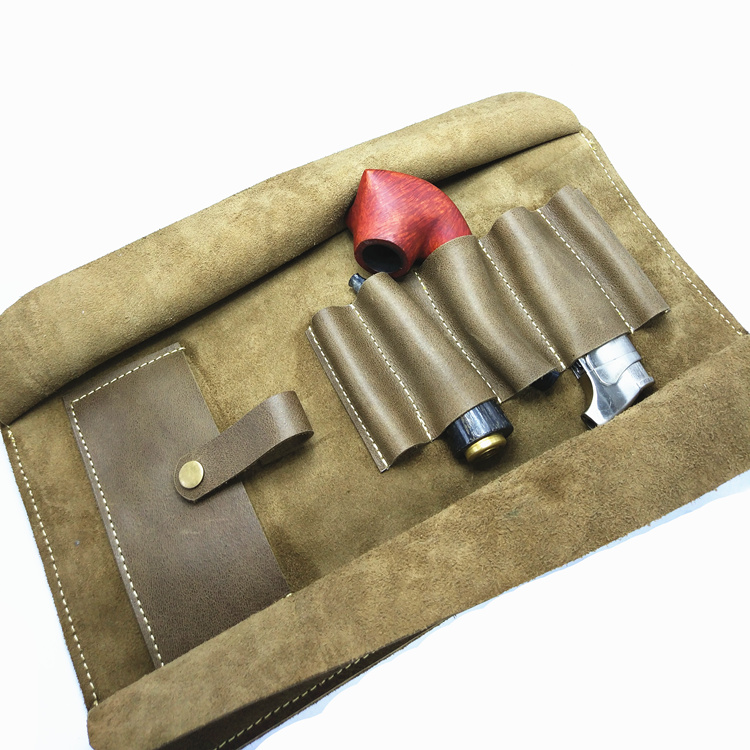 Multi-bucket large-capacity handmade leather pipe bag first layer cowhide pipe bag hand-rolled portable cigarette bag can hold three pipes