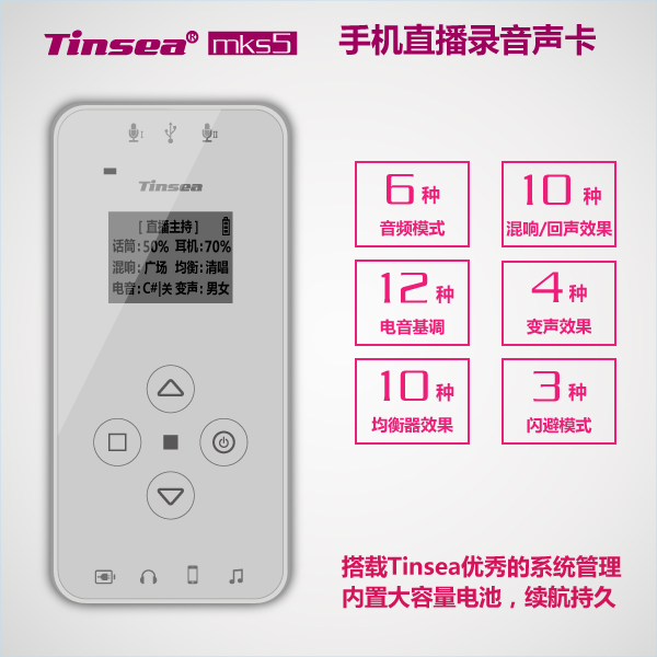 Tinsea MKS5 mobile phone sound card live recording host shouting Maidian sound changing K song fighting fish pepper Yingke