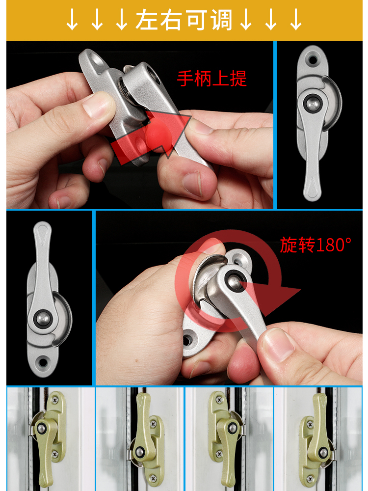 Plastic steel moon tooth lock aluminum alloy window lock door and window lock lock lock button hook