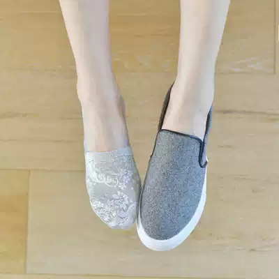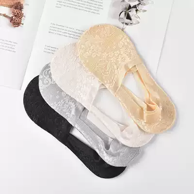 Mitu 4 double lace deep mouth invisible socks female invisible can not fall off with thin summer cotton bottom non-slip silicone shallow mouth short socks