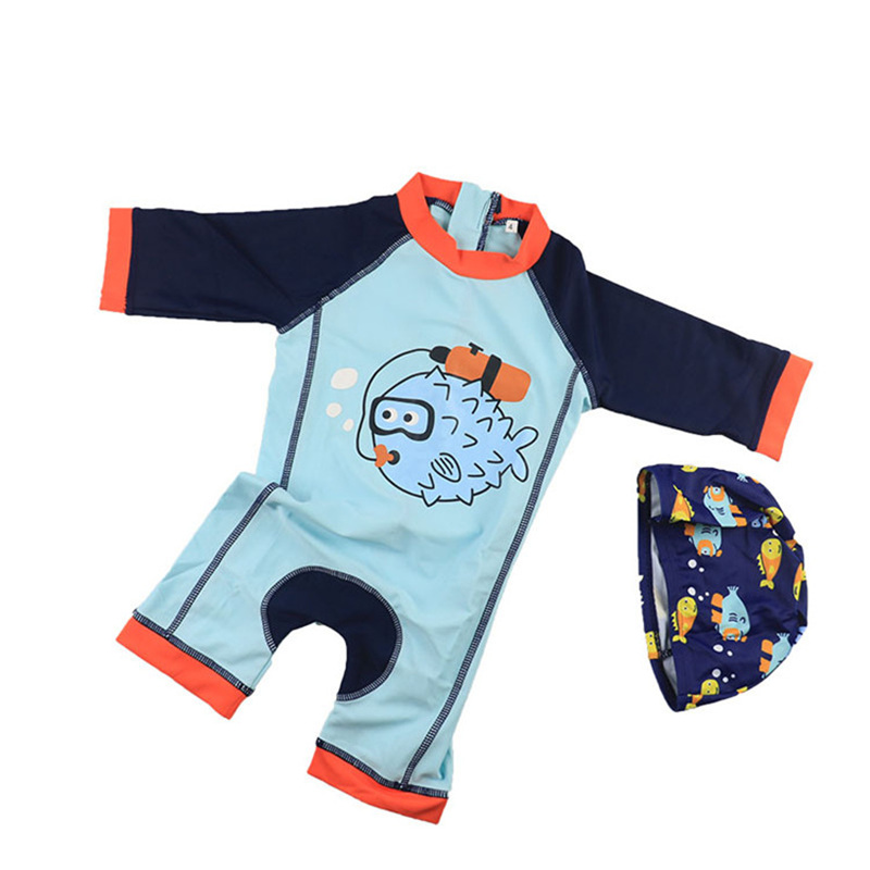 Kids Swimsuit Jumpsuit Boys Kids Swimsuit Quick-drying Sunscreen Swimsuit Baby Wetsuit Waterproof Mother Send Cap