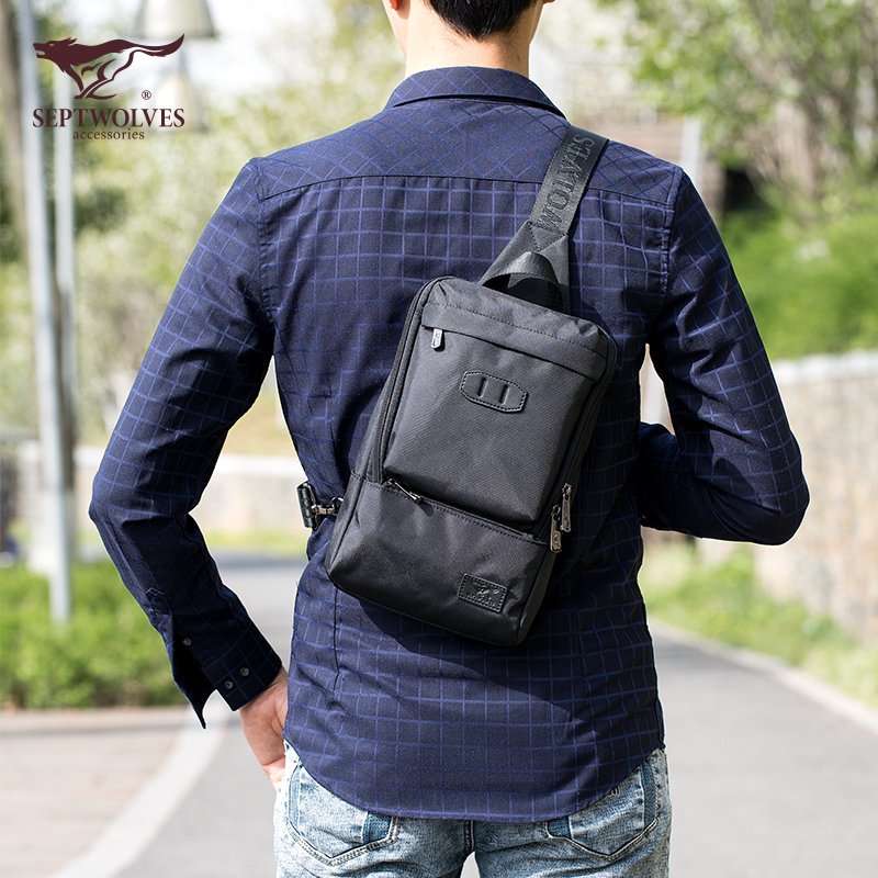 Seven Wolves Men's Chest Wrap Collage Fashion Single Shoulder Bag Tide Men Leisure Travel Carry-on Bag Left And Right Shoulder Adjustable-Taobao
