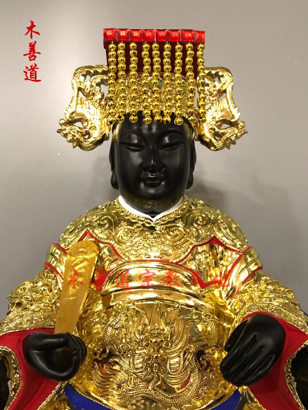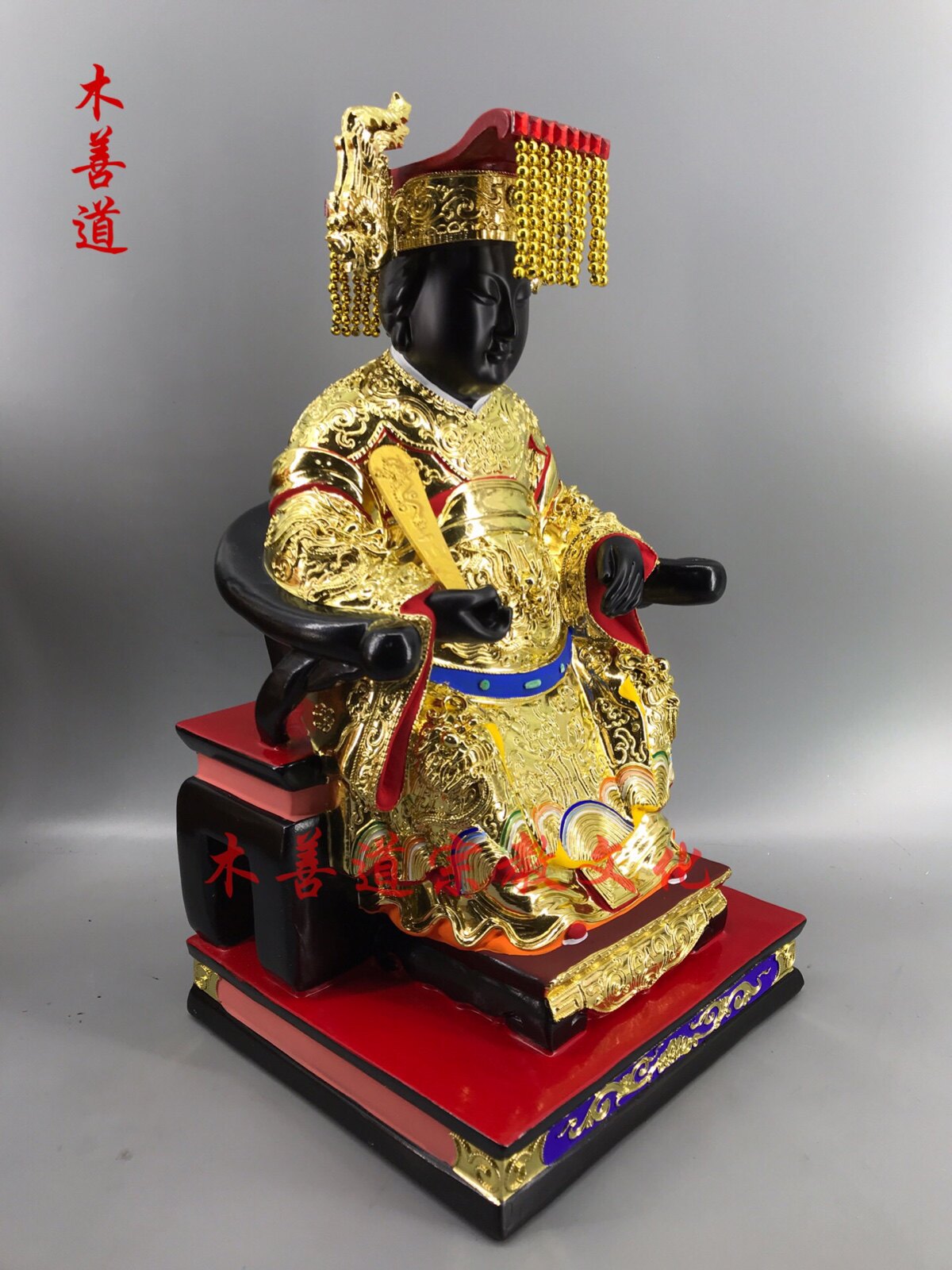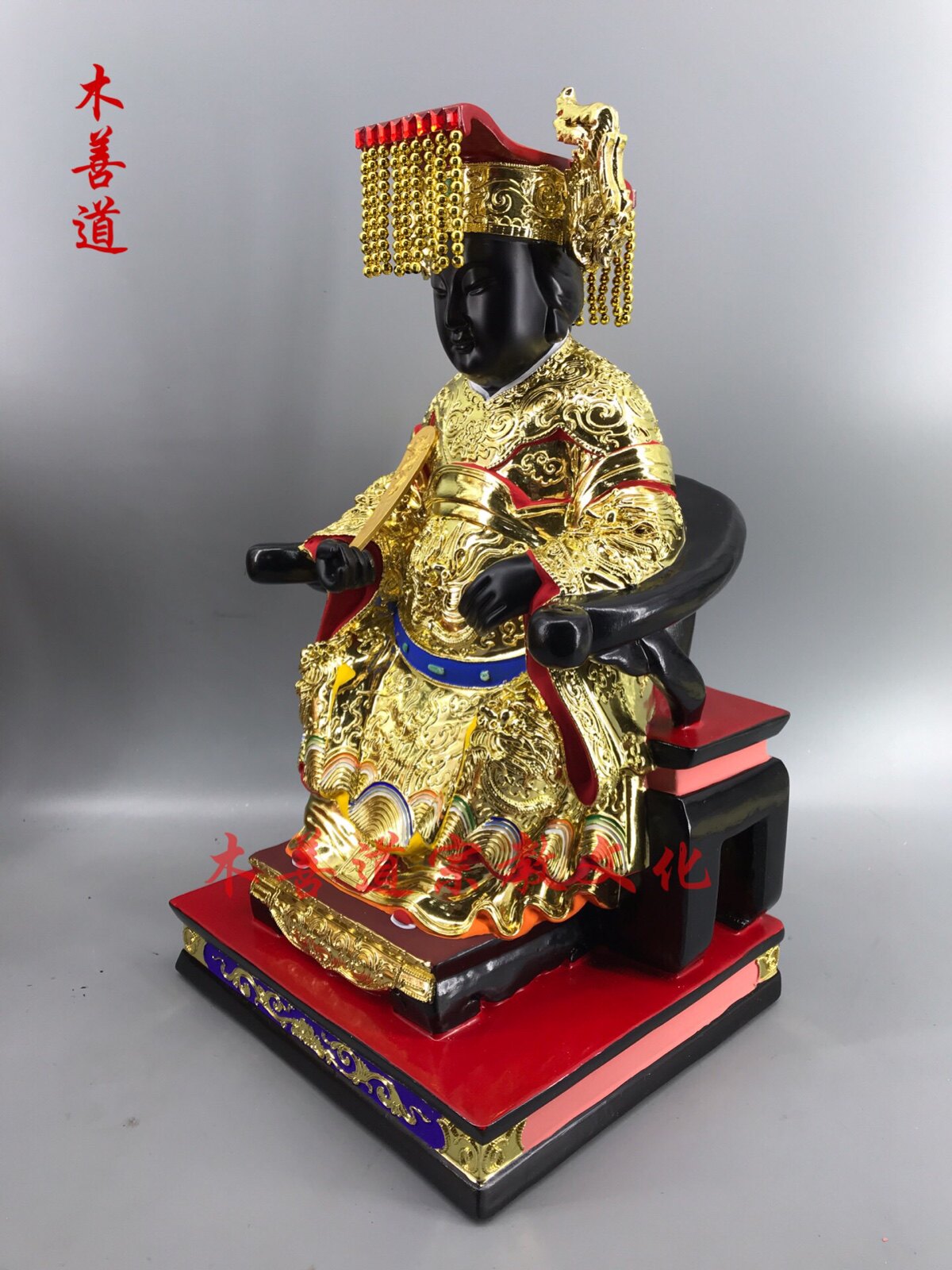 Wooden carving Ma Zu statue customized black - faced mom and mama Tianana Lin Mother Mother Lin paint line sculpture boutique 40cm