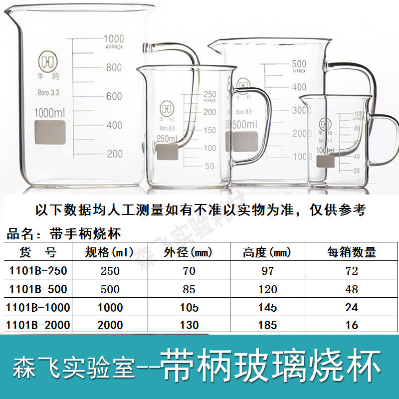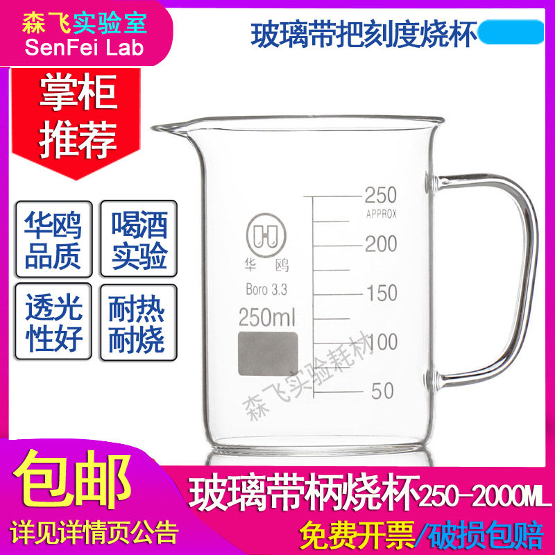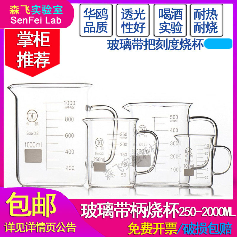 (Senfei experimental consumables) glass beaker with handle, handle beaker, with scale 250 500 1000 2000ML drinking glass liquor beer glass heating milk chemical experiment