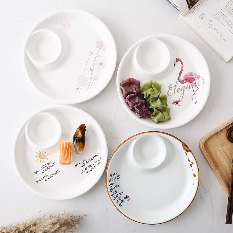 Dumpling Plate with Vinegar Dish Bowl Porcelain Special Plate for Eating Dumplings Creative Household Mother and Mother Plate French Fries Packed Shrimp Plate - Taobao
