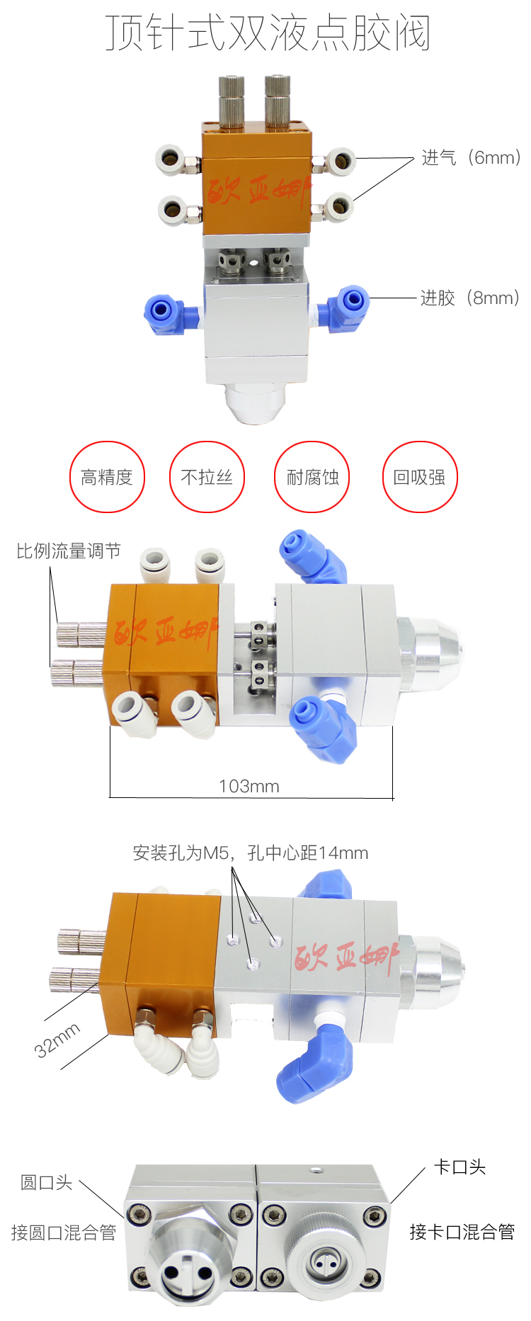 32T thimble type double liquid point glue valve high precision AB glue dispensing valve