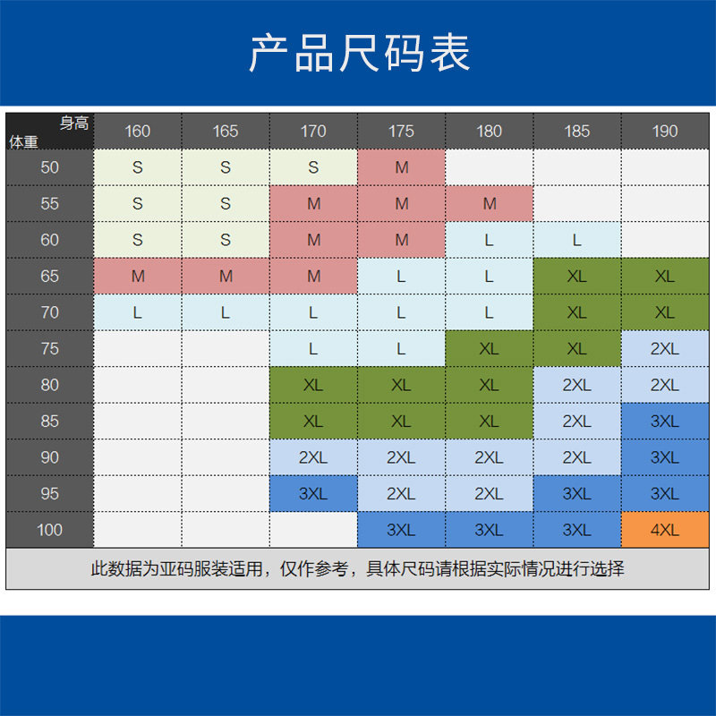 S 165 M 170 L 175 XL 180 XXL 185 3XL 190
