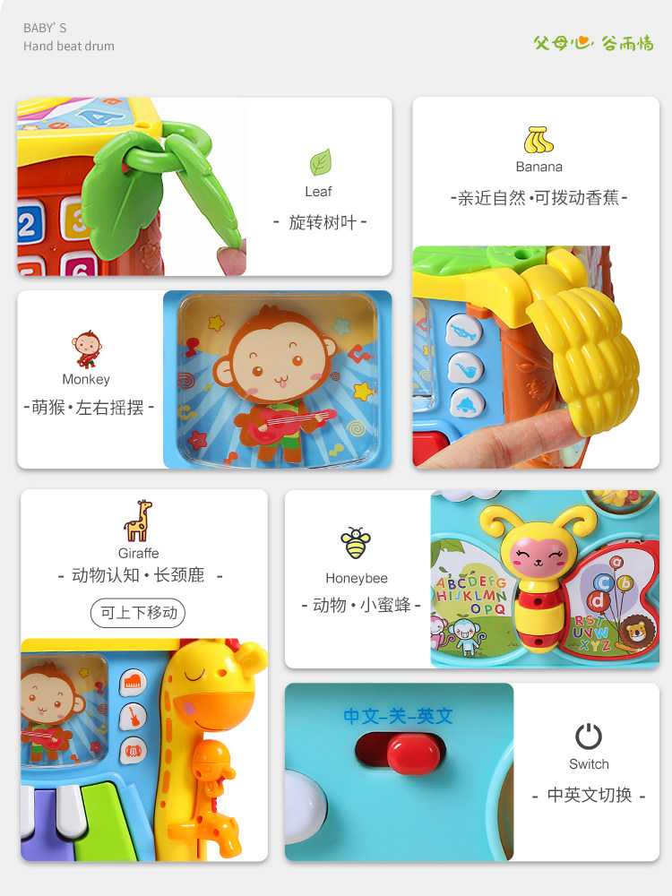 Gu Yu hexahedron educational toys 6-month-old baby music hand beat drum charging 0-1-year-old multifunctional beat drum