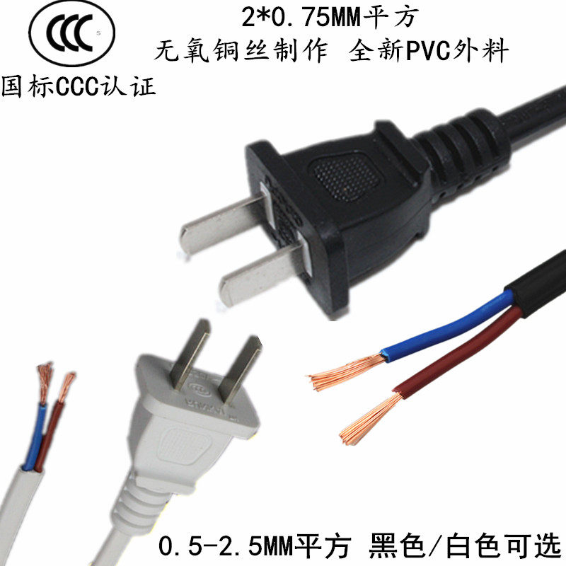 GB pure copper power cord two holes two plugs 2 cores 0 75 1 2 5 square 3 5 meters high-power plug with wire