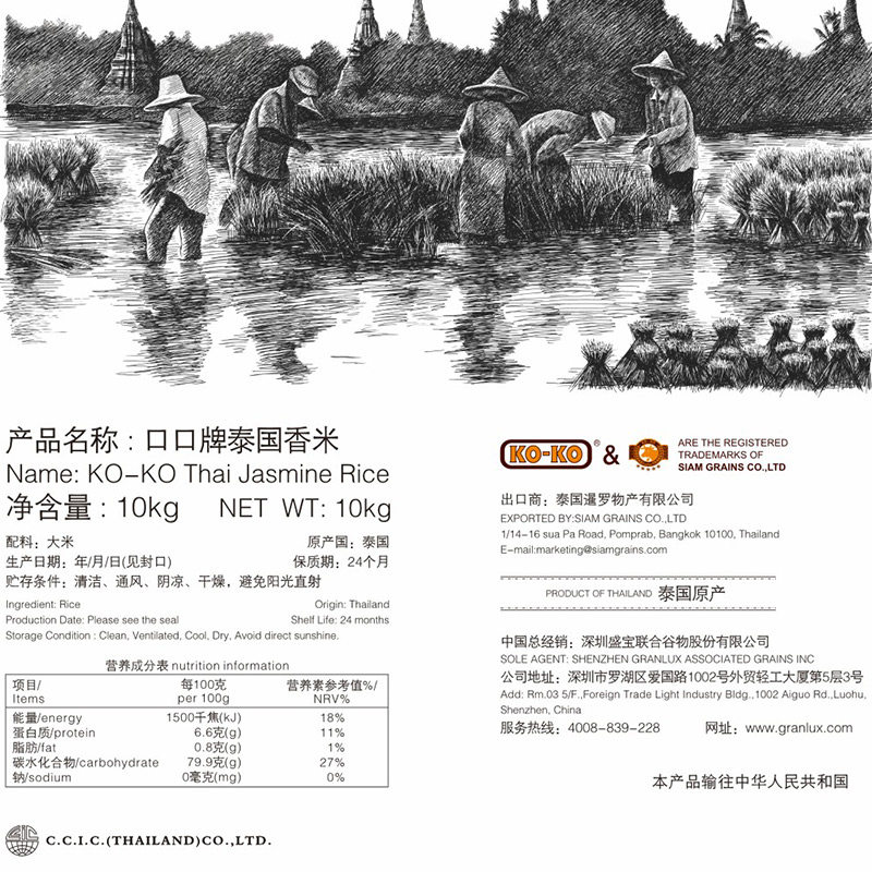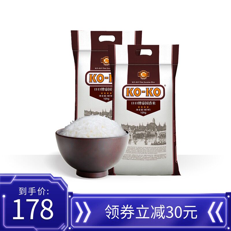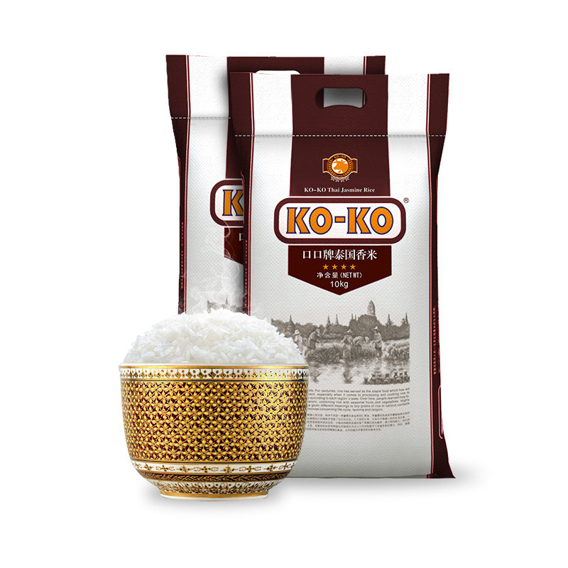 KOKO Thai fragrant rice Original imported long grain fragrant rice Thai rice fragrant rice 10kg*2 20 pounds two bags