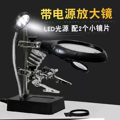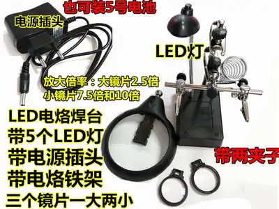 Multi-function electric welding table with LED light Desktop magnifying glass 10 times electric soldering iron bracket workbench set